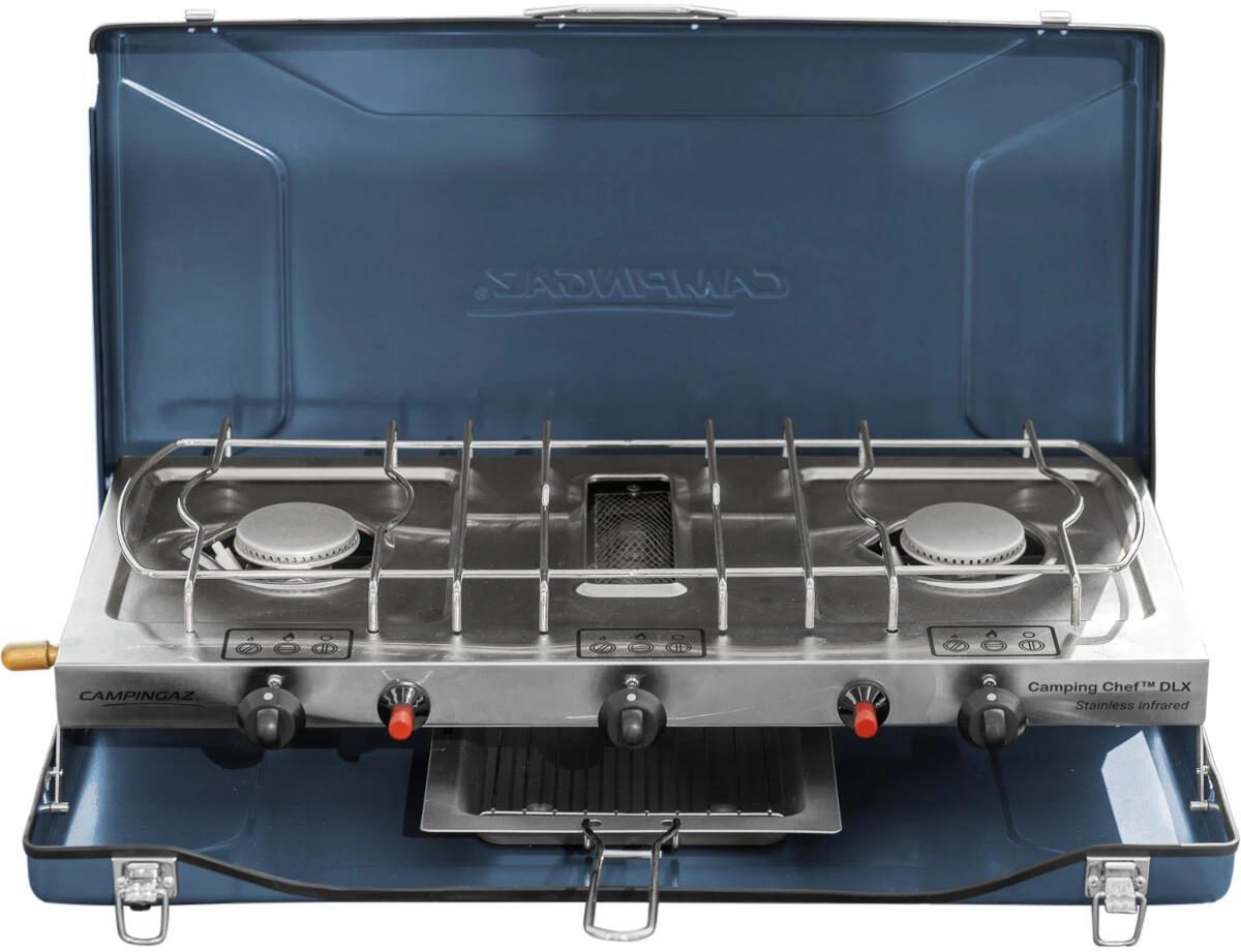 A classic, 2 burner stove with an additional radiant grill – perfect for making tea and toast on the move.