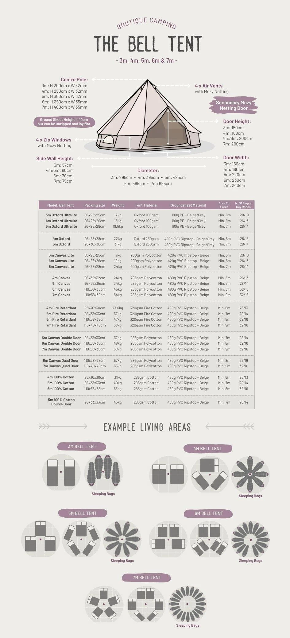 The Classic Bell Tent has the quickest pitching time amongst the range, available in 3m-8m and boasts an extra tall door height, making it ideal for any camper seeking a no fuss.