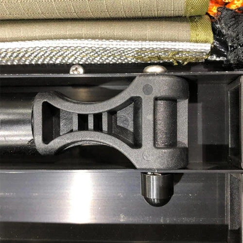 The awning is made from heavy-duty, mould-treated 320gsm ripstop polycotton canvas, blocking out direct sunlight and harmful UV rays, and has an outstanding PU 2000mm waterhead rating to keep you dry on those rainy days. The uniquely designed pivoting hinges are made to be tough and crack resistant while still providing flexibility to reduce overall component stress.