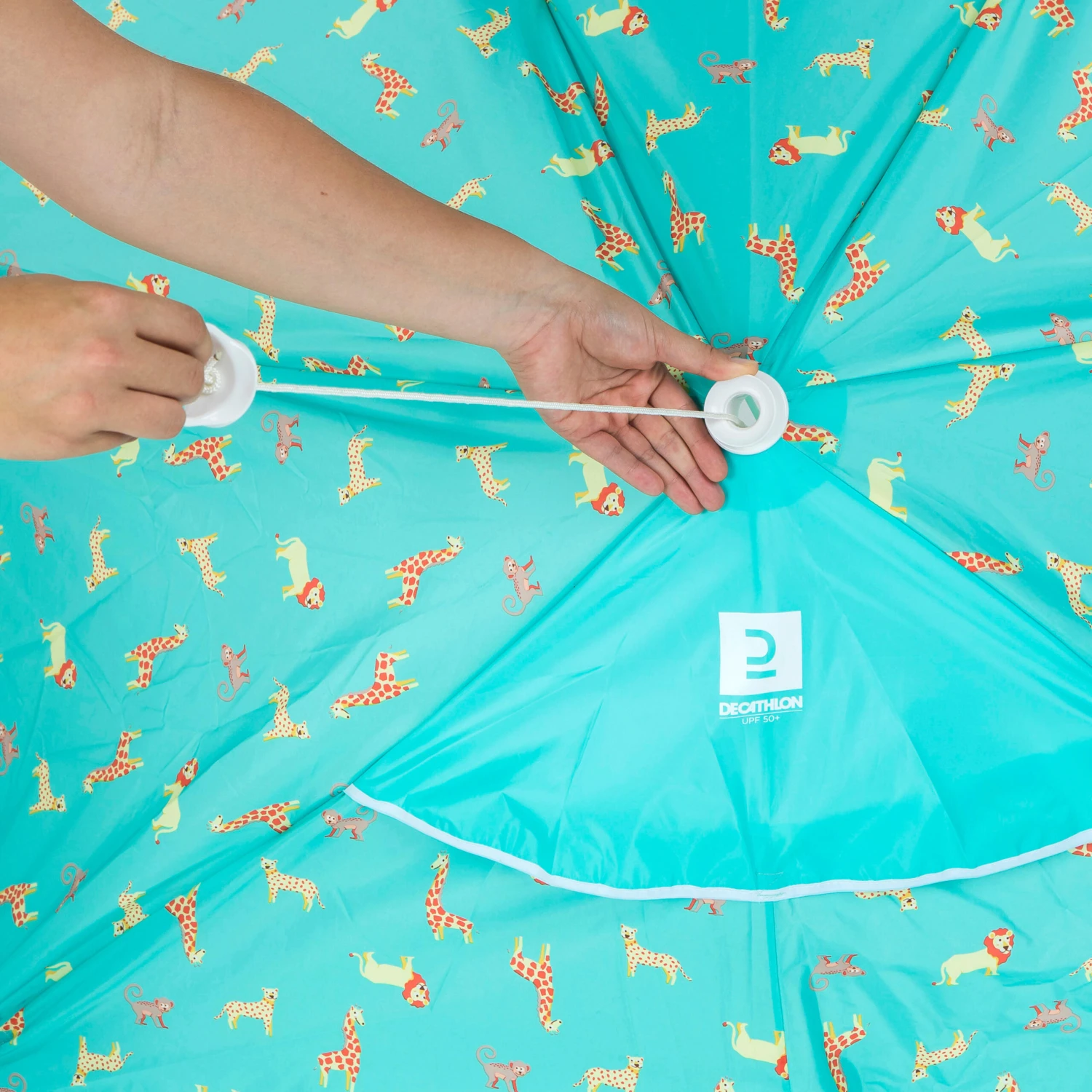 Designed for protection your child from the sun on the beach without the bother of a parasol base. Wind resistant up to 30 km/h. Accommodates 1 child and 1 adult.The IWIKO 150 compact sun shelter can be unfolded or folded in just a few seconds, thanks to the exclusive opening system. The ideal solution for enjoying the beach with your child.