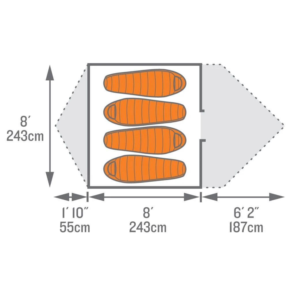 The Kelty Palisade 4 also features a catenary floor / wall design that keeps the seams off the ground and watertight and tapered seams that ensure weather protection.Â