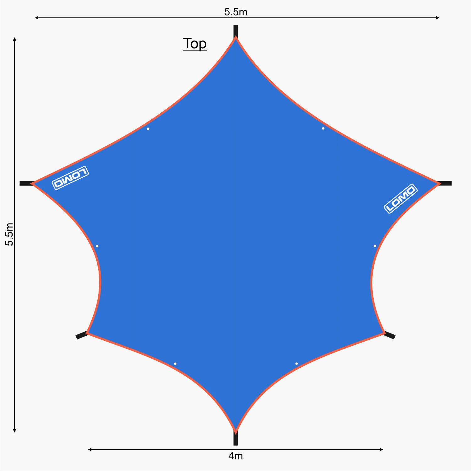 Large 5.5m x 5.5m tarpaulin which comes with everything you need to make a sun shelter or camping awning.