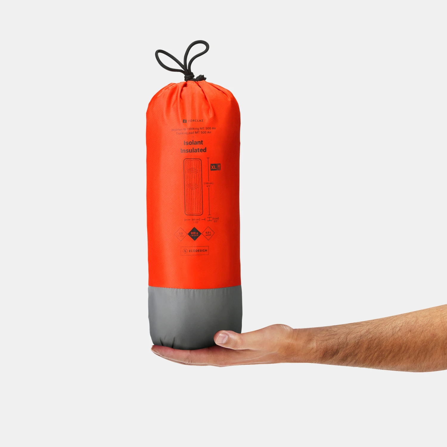 Our designers, who are trekking enthusiasts, created this insulated inflatable mattress for sleeping comfortably while trekking or bivouacking. XL version.Thanks to its R-Value of 3.3, this mattress is perfectly suited for 3-season use. Its weight is still low (800g). And the pouch turns into a pump bag!